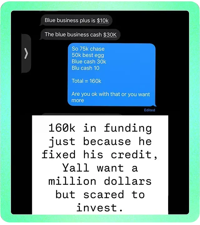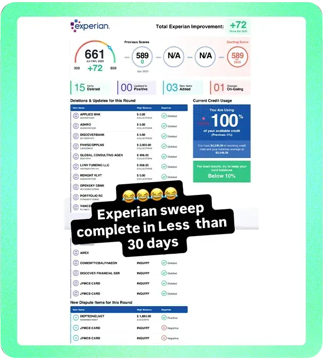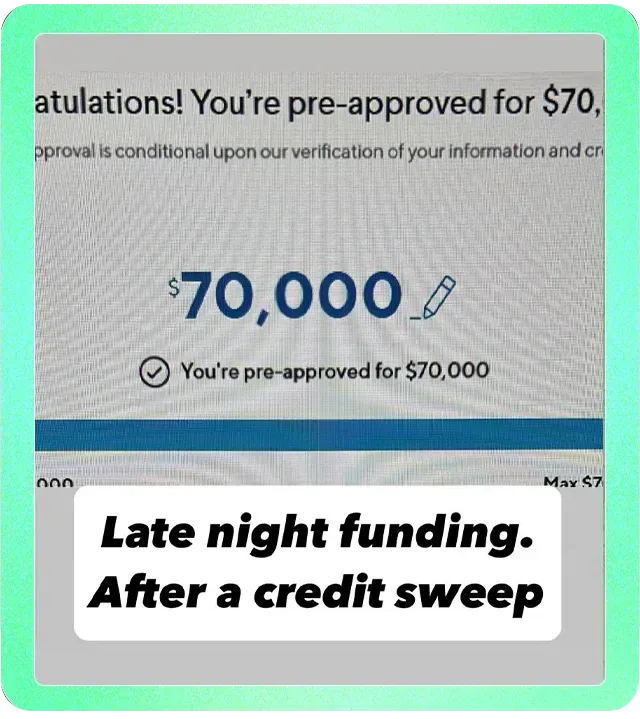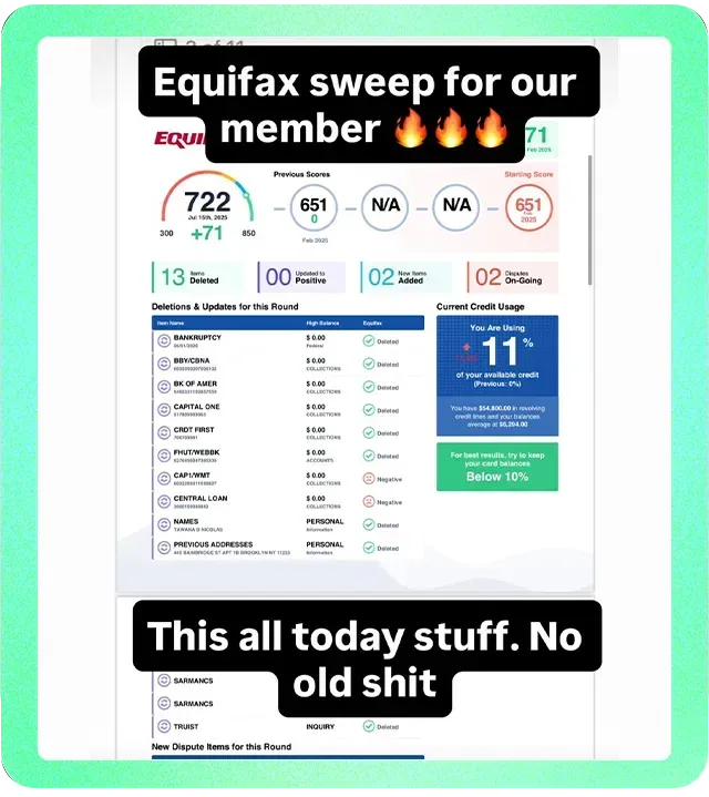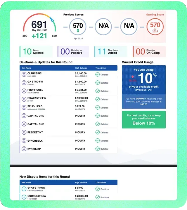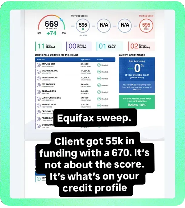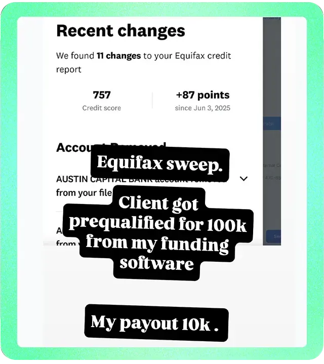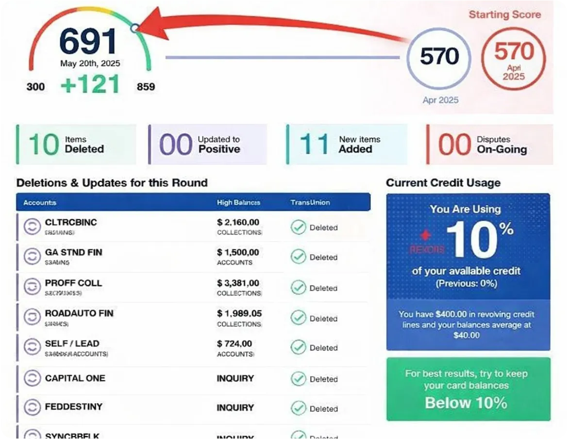 Our member credit score went from A 570-691 in less than a few weeks using our done for you AI credit repair . Then our funding department got the same client approved for 82k